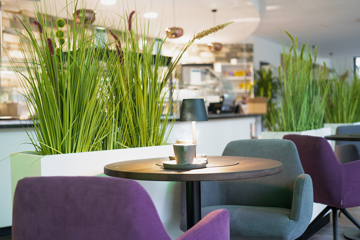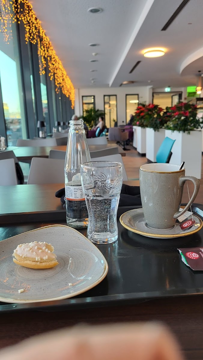 The moment you step inside, you're greeted by a warm ambiance adorned with lush greenery, charming lamps, and the soothing sounds of gentle music. It’s the perfect spot to unwind, whether you're visiting loved ones at the hospital or simply enjoying a leisurely afternoon after a beautiful stroll along the Rhine River.